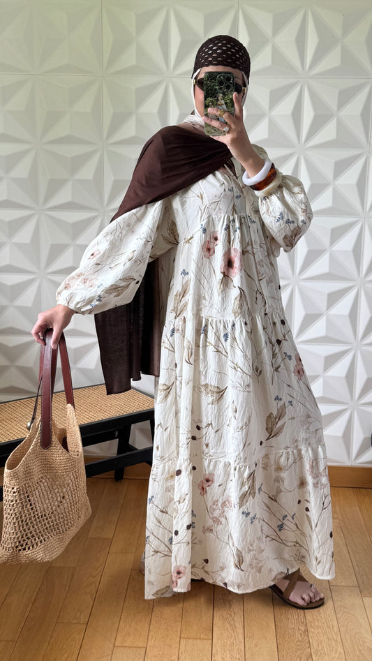 Robe babydoll à Imprimé fleurie avec manches bouffantes - Taupe