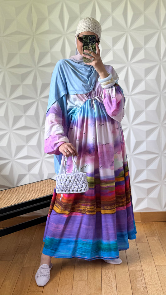 Robe oversize imprimé tie-dye pastel en viscose avec taille froncée