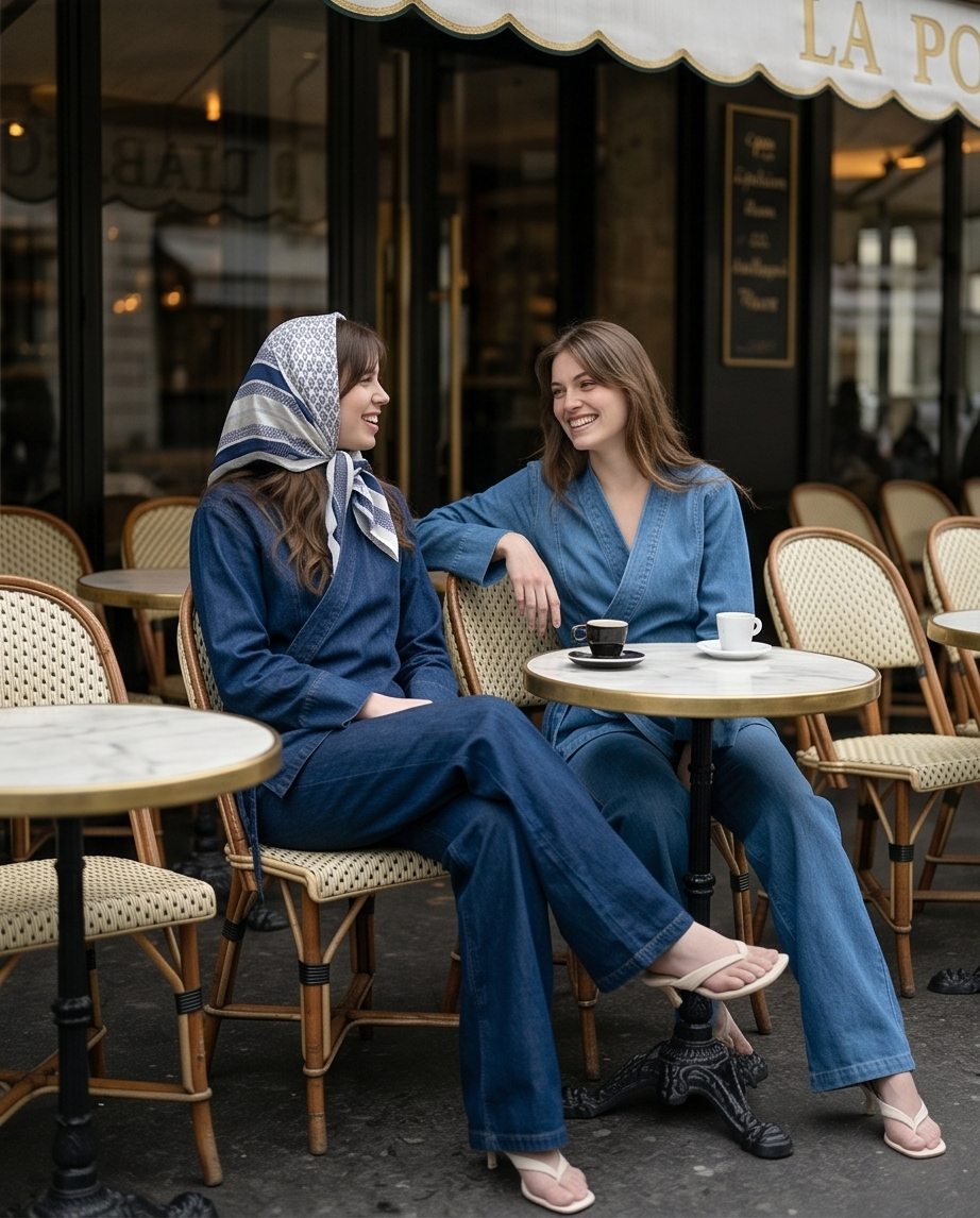 Robe style bohème avec manches bouffantes et Liens à pompon - Bleu et Orange