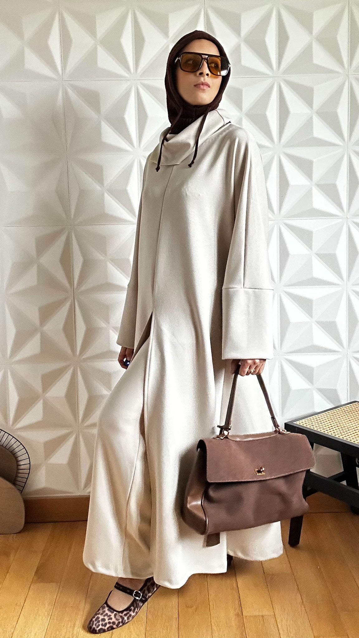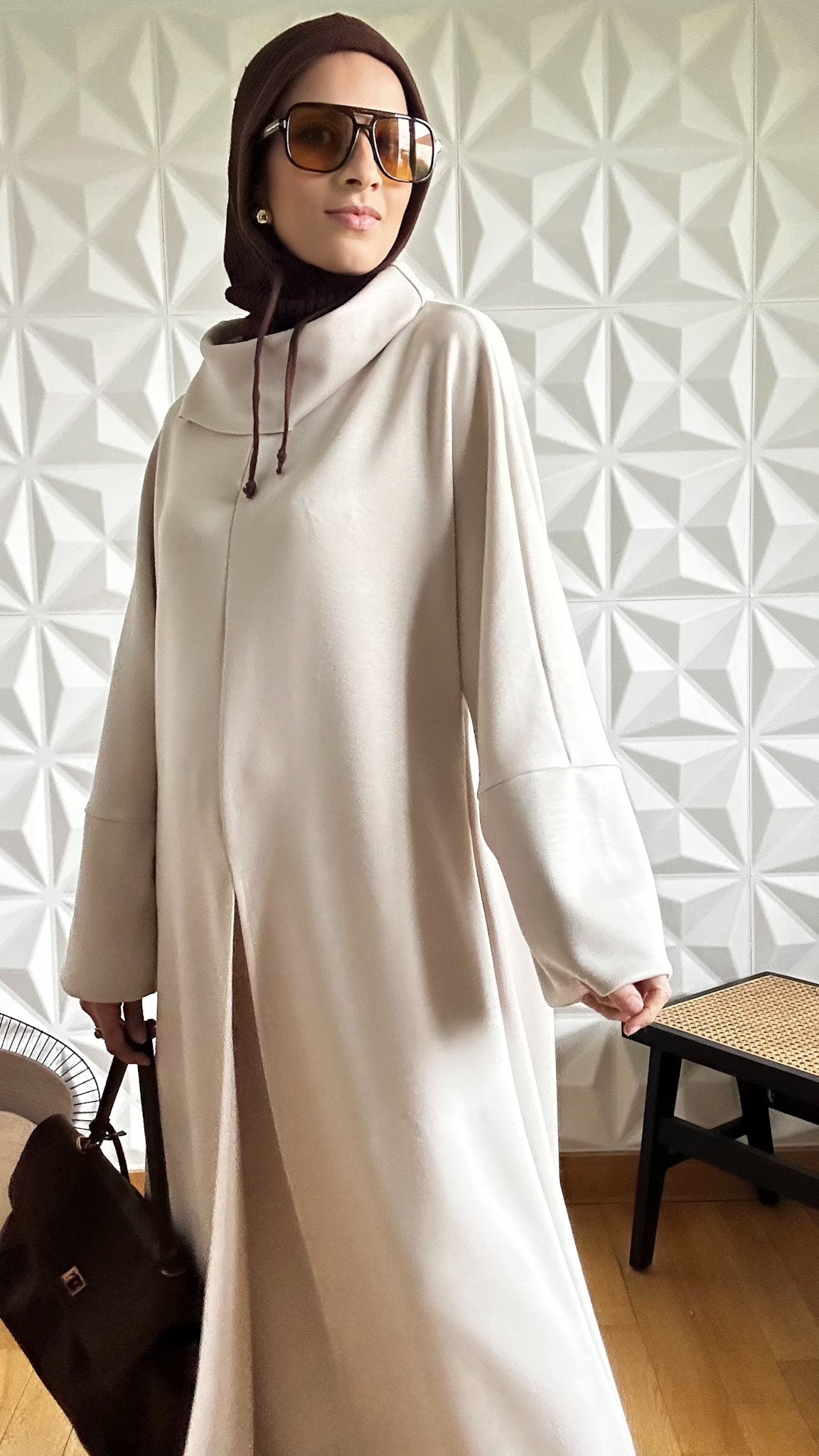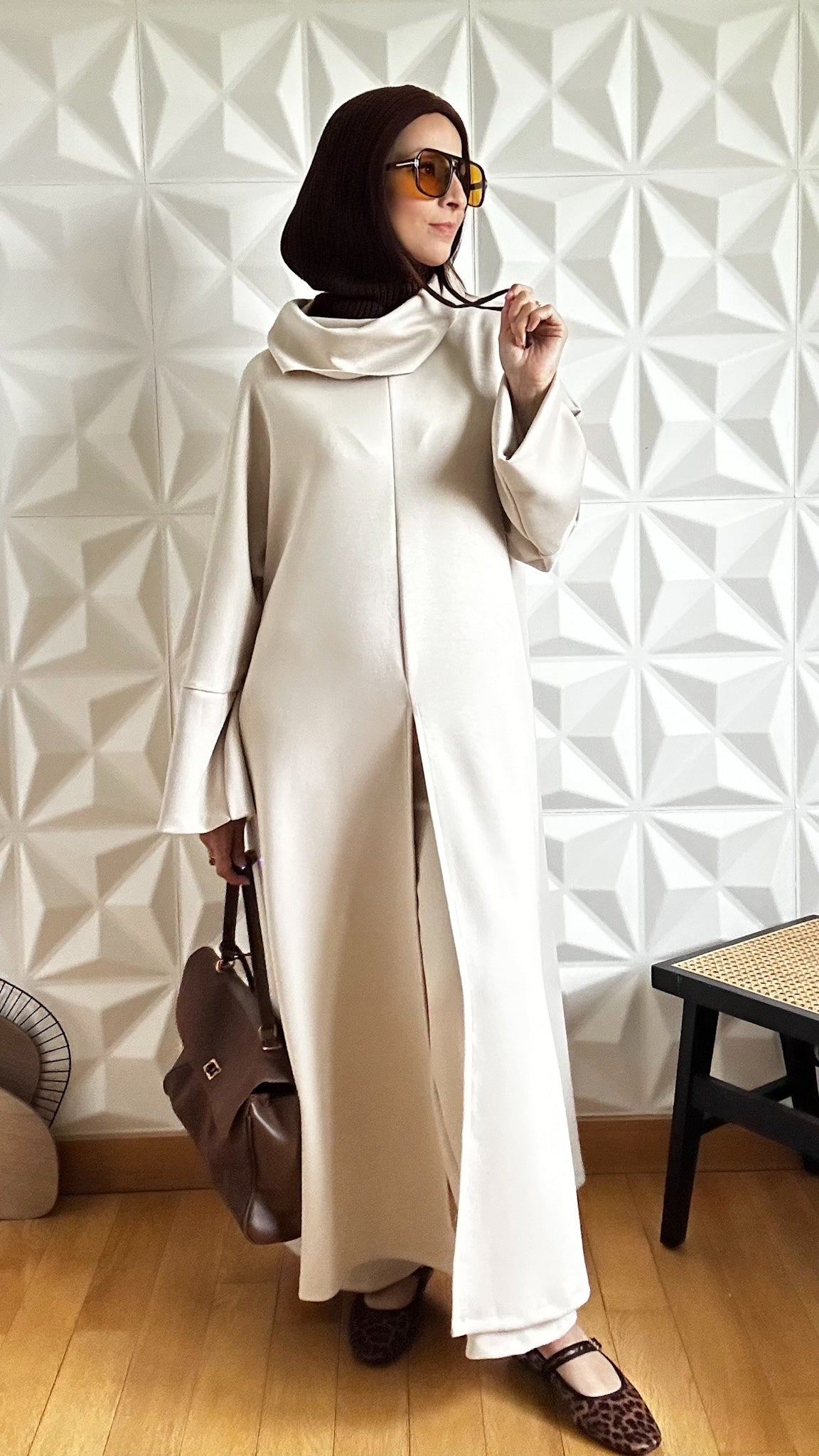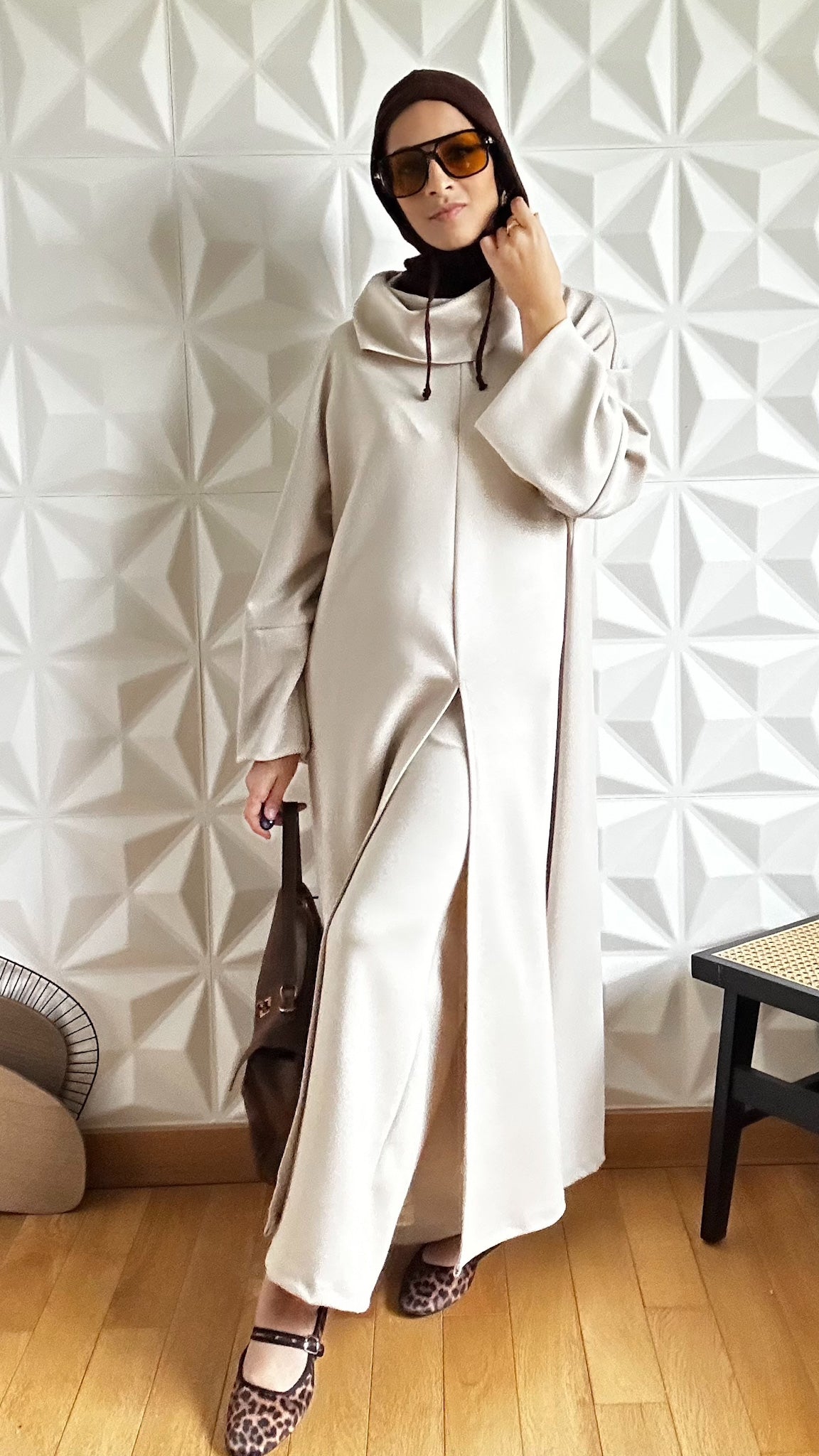 Ensemble pantalon large et robe caftan à col roulé - Beige