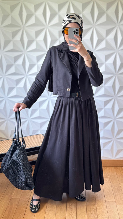 Apportez une touche d’élégance naturelle à votre garde-robe avec notre Ensemble Tailleur en Lin, conçu pour sublimer la femme moderne et pudique. Composé d’une veste à coupe carrée structurée et d’une jupe longue à volants fluide, cet ensemble est parfait pour vos sorties estivales, vos événements ou vos journées de travail sous le signe du raffinement.