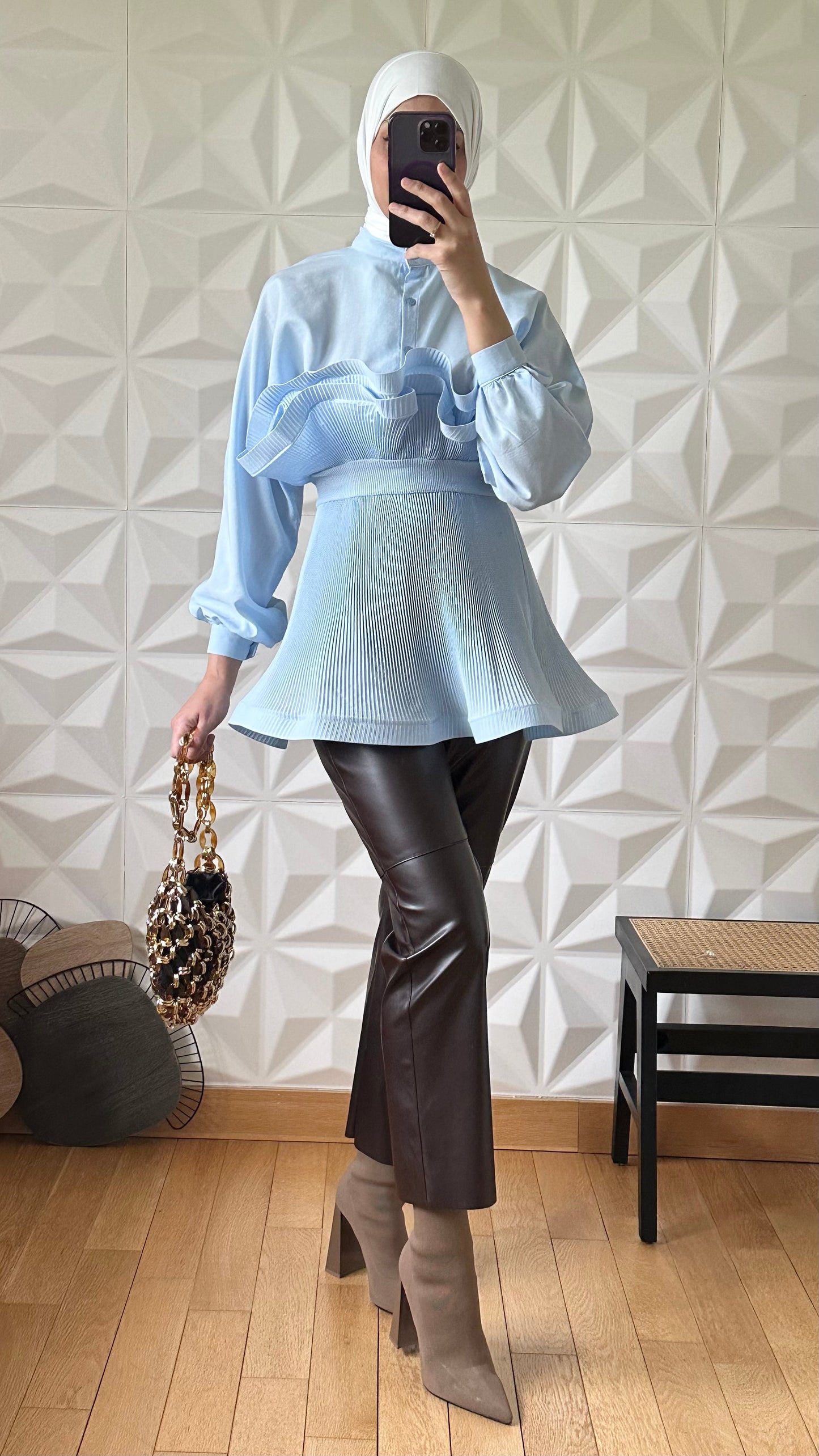 - Carrure volantée : La carrure volantée ajoute une touche de romantisme et de douceur au chemisier, créant un effet visuel unique et élégant.
