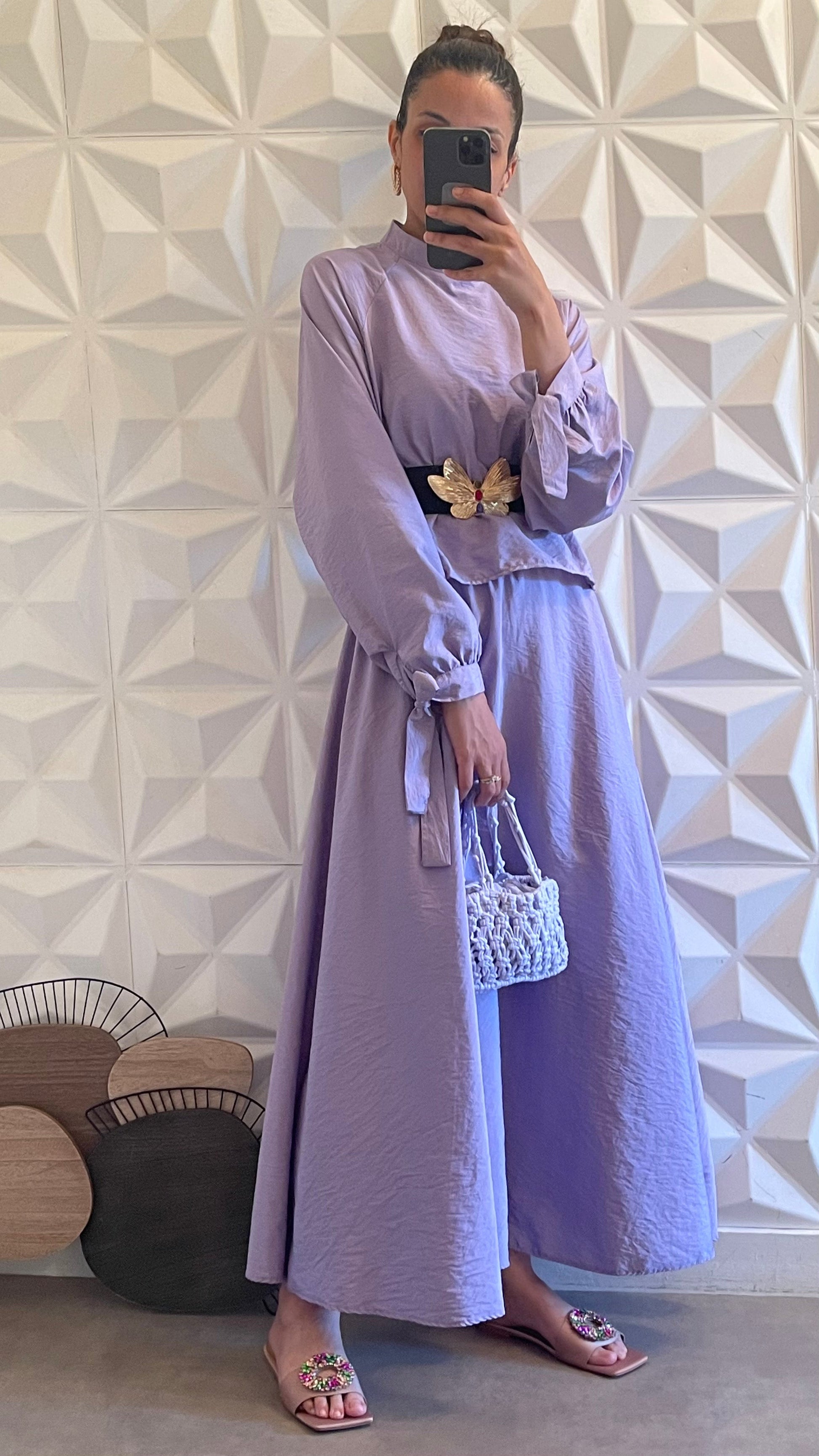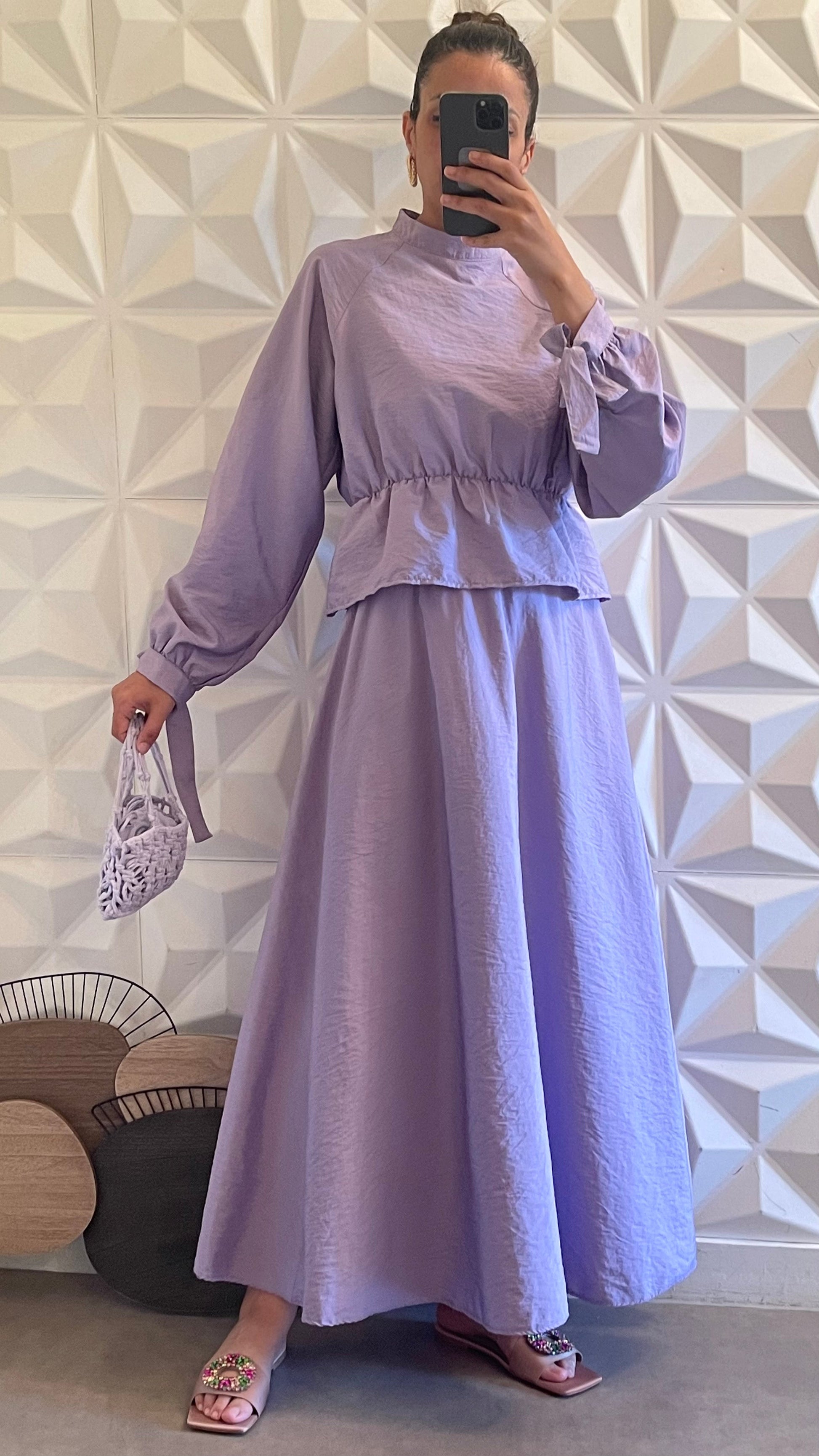 Ensemble avec Chemisier manches nouées et jupe évasée - Lilas