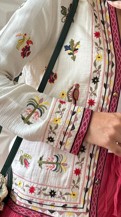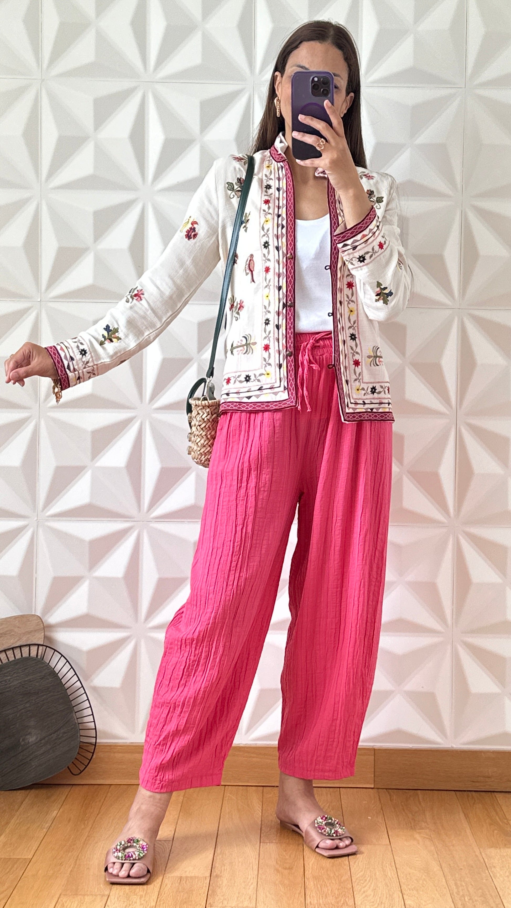 Hager S. Ce chemisier peut se porter autant ouvert que fermé, dans les deux cas il fait son effet avec ses couleurs et broderies délicates. Le tissu est vraiment joli et le rendu comme sur la photo. Je recommande!
