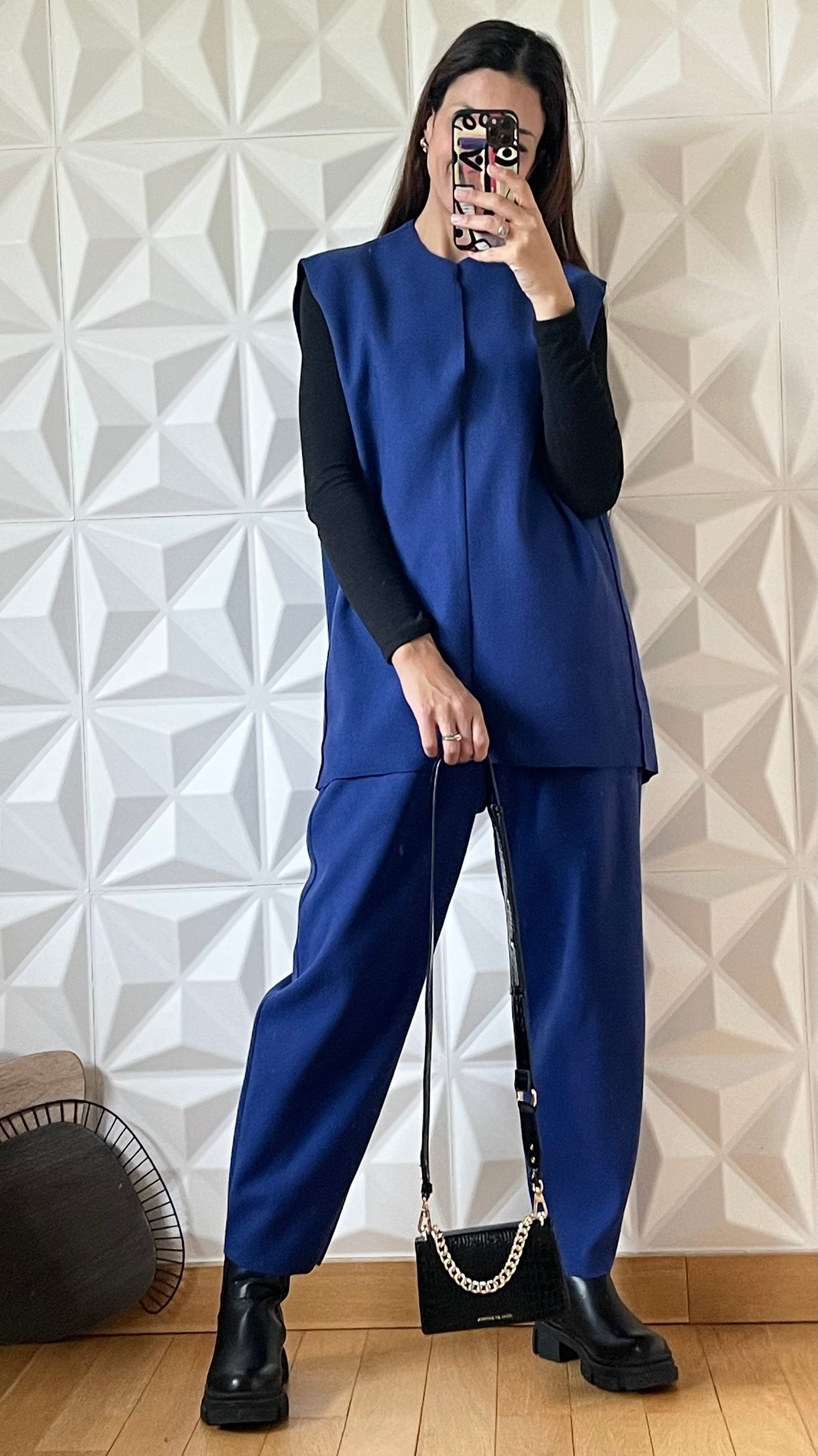 Ensemble en feutre sans manches et pantalon coupe carotte - Bleu