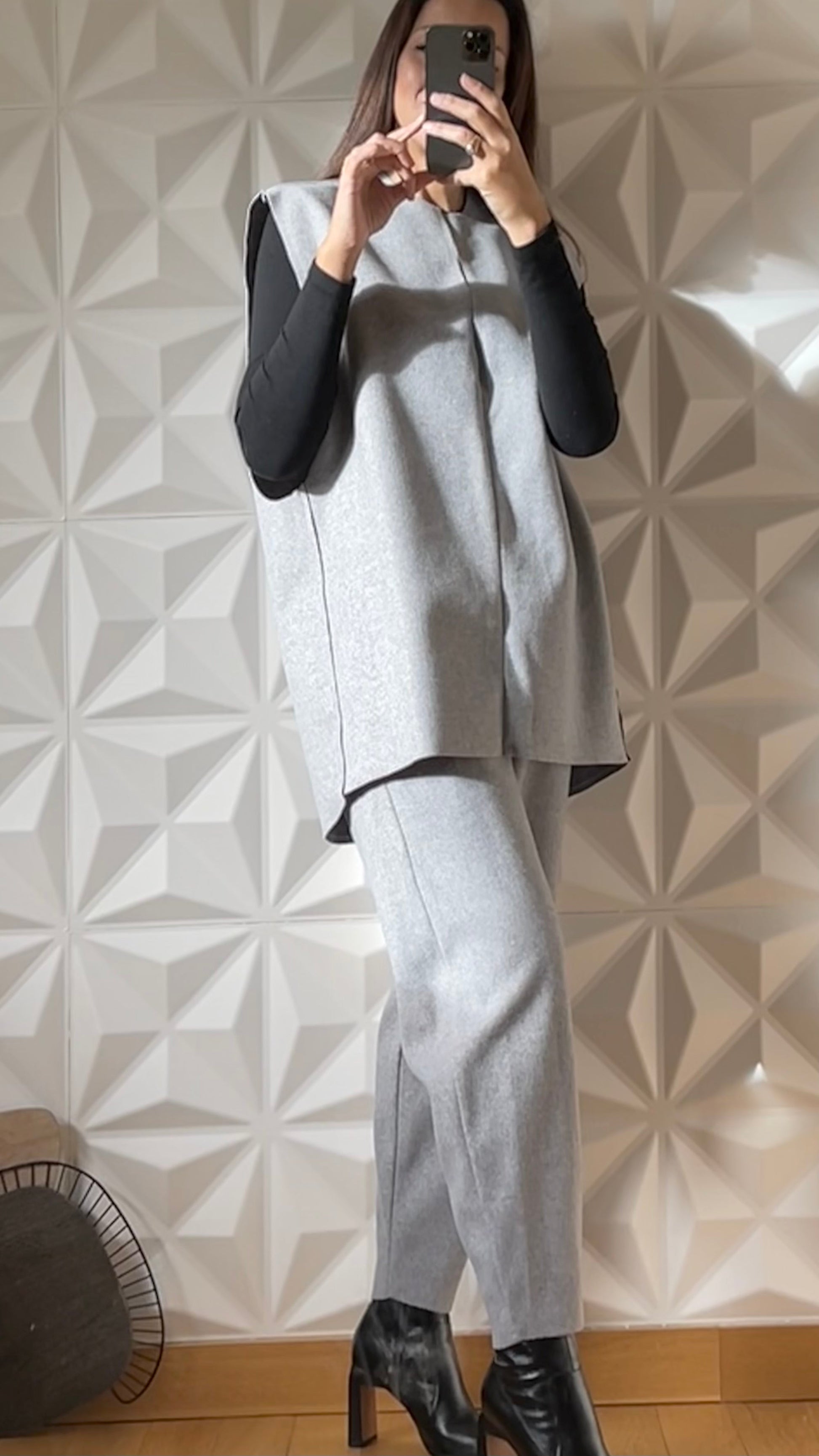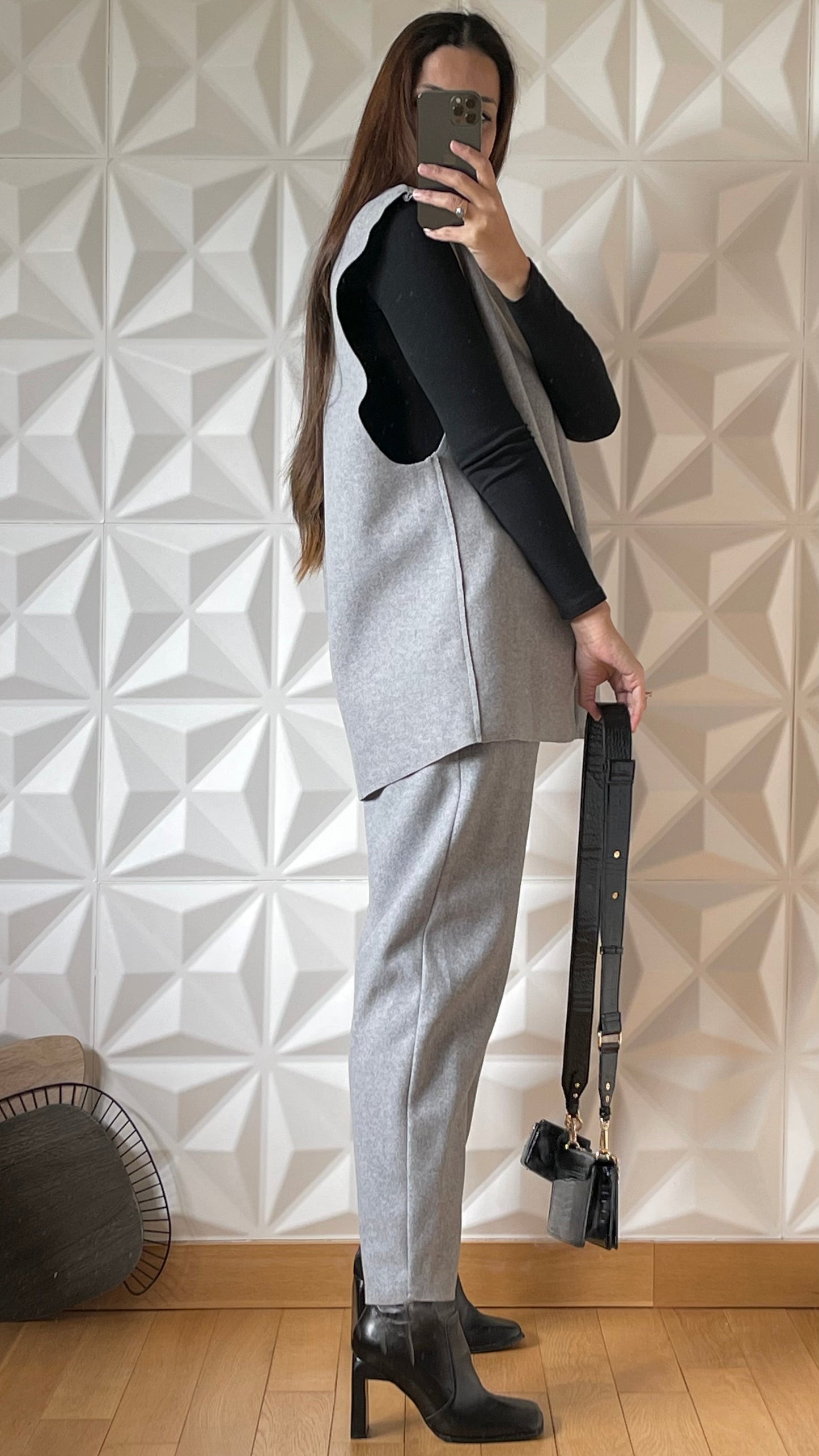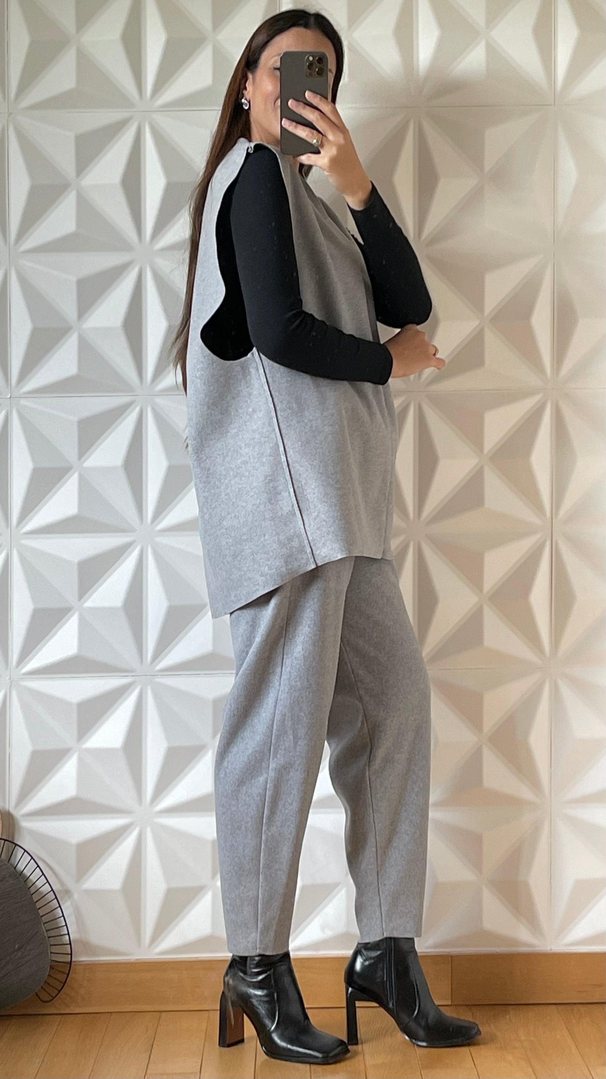 Ensemble en feutre sans manches et pantalon coupe carotte - Gris