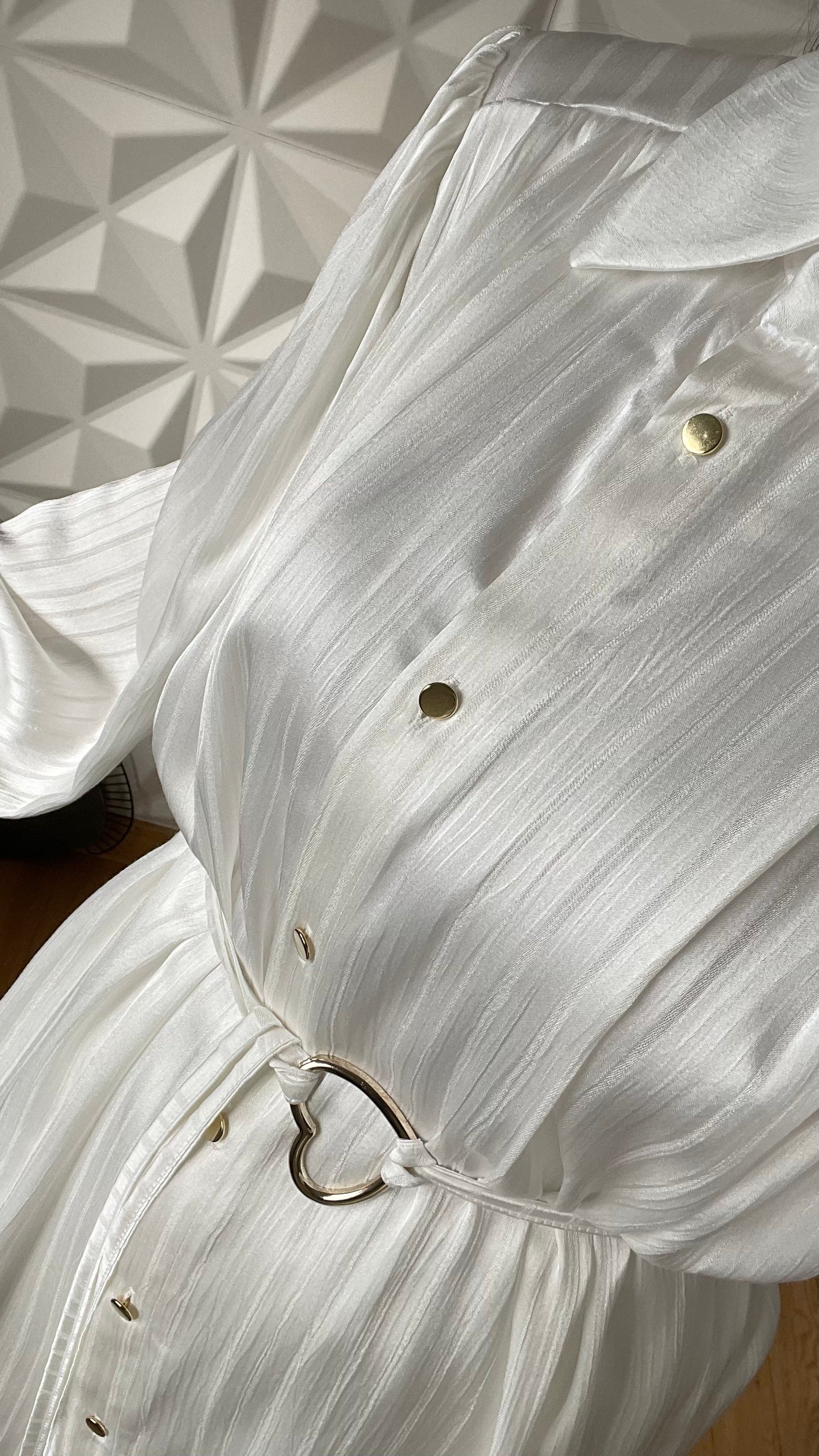 Ensemble Pantalon large et chemise avec ceinture cœur - Blanc